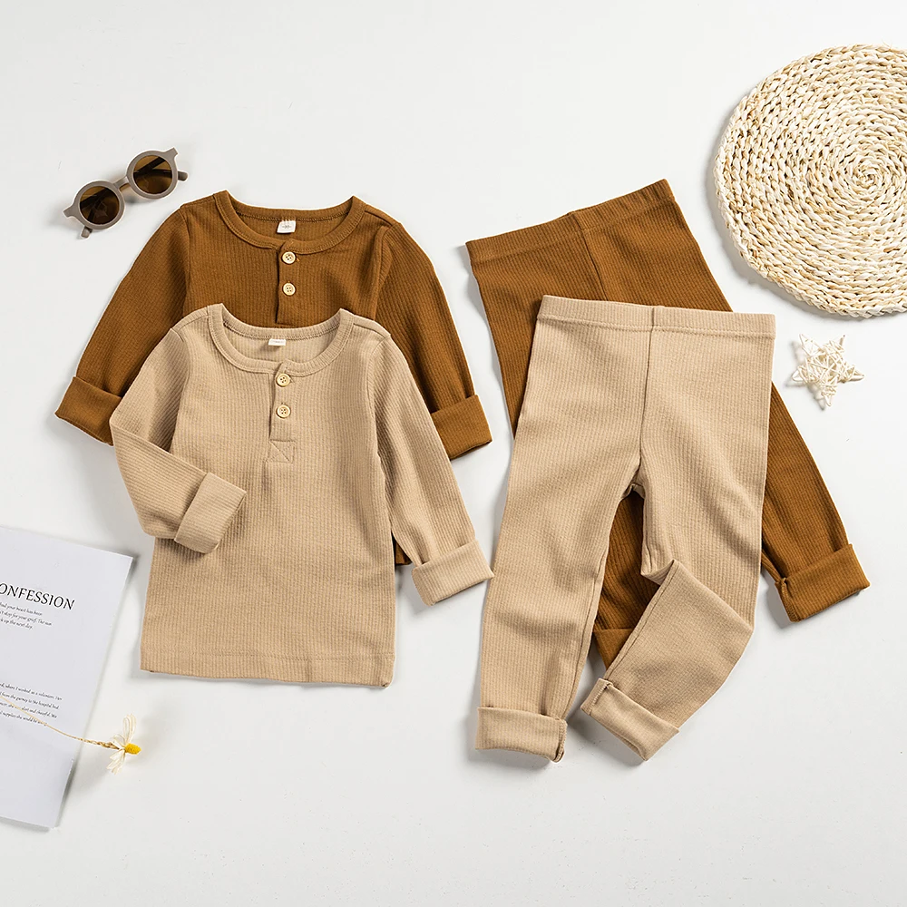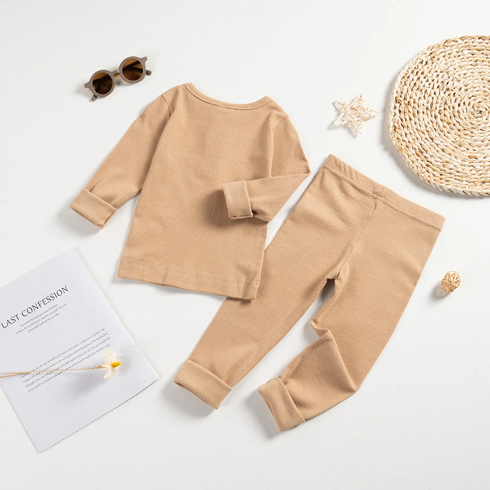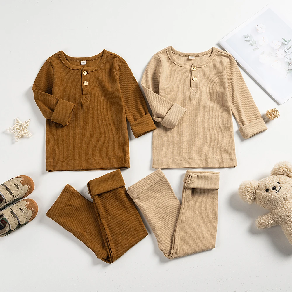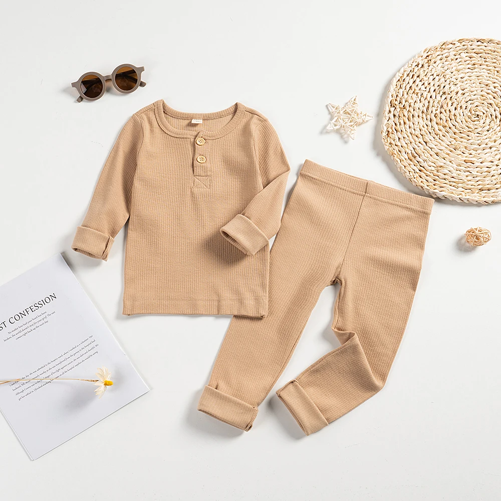 - النوع : 2 قطعة الأطفال منامة مجموعات الربيع بلون القطن الملابس الدعاوى ا